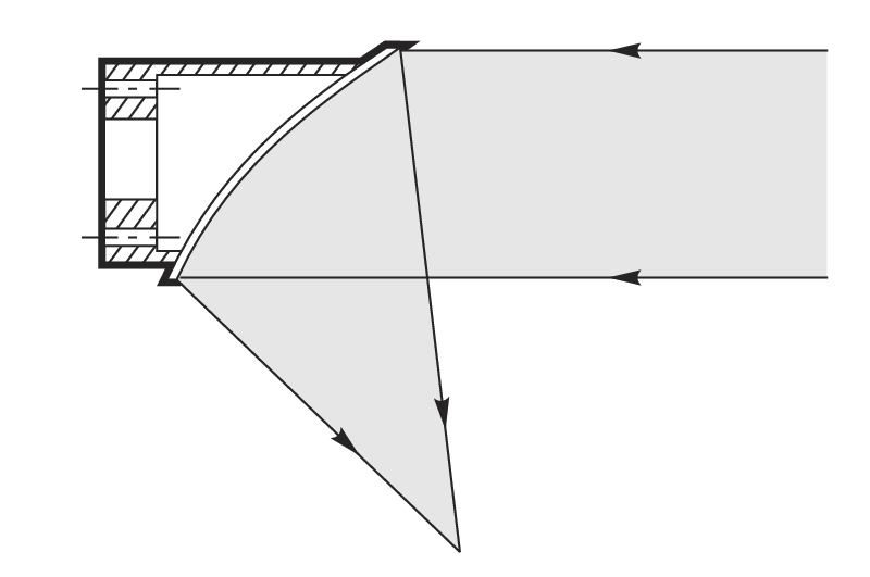 Compared with on-axis parabolic or ellipsoidal reflectors, the off axis mirrors do not have a central hole enabling light across the entire aperture of the mirror to be focused onto a detector. Moreover, by folding the optical axis and displacing the focus away from the mechanical axis, it is easier to install baffles to block stray light from paths outside the aperture from reaching the detector.