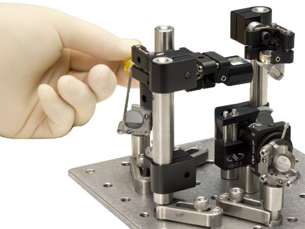 All SP-Z series pedestals have a magnet located in the base to steady the pedestal prior to clamping it to an optical table by a SP-F clamping fork. This feature allows experimenters to securely position their optical mounts prior to clamping them down. Not only does the magnetic base reduce the potential for damaging optical components, it also greatly increases the speed and efficiency with which an experiment can be set up.