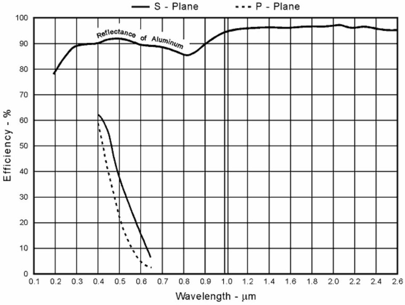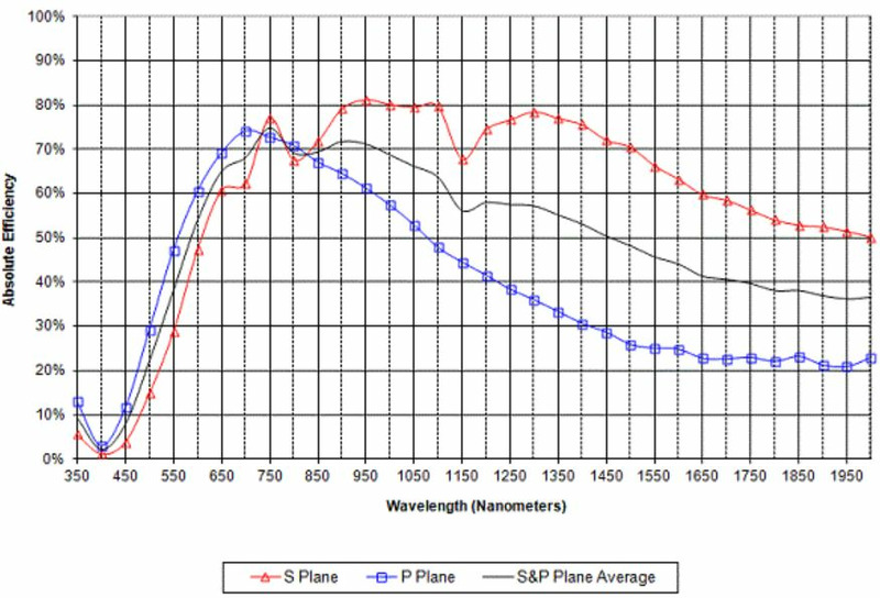In general, for ruled diffraction gratings the groove spacing determines the diffraction angles, and the groove depth and blaze angle determines how diffracted energy is distributed between diffraction orders. Designed for first order Littrow use, Newport’s Plane Ruled Reflection Gratings are blazed to achieve extremely high single-order diffraction efficiency at particular design wavelengths. At Newport, we have three ruling engines in full-time operation, each producing high-quality master gratings each year. These ruling engines provide gratings with triangular groove profiles, very low Rowland ghosts, and high resolving power. Mechanically ruled, individual grooves are burnished with a diamond tool against a thin coating of evaporated metal. Utilizing a high fidelity cast replication process, developed and enhanced through years of research and manufacturing experience, we have the ability to provide duplicates of master gratings that equal the quality and performance of the master grating.