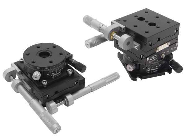 These extended range stages are designed to be easily configured into multi-axis stage stacks. An XYZ assembly is shown in this video using three SM-25 micrometer actuated 423 stages with a 360-90 or 9101NF right angle bracket.