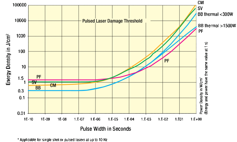 The PF type has wavelength dependent response, and it is employed in the sensor 919P-050-18HP, which is specially designed for high energy density pulses and can measure up to 2.2 µm.