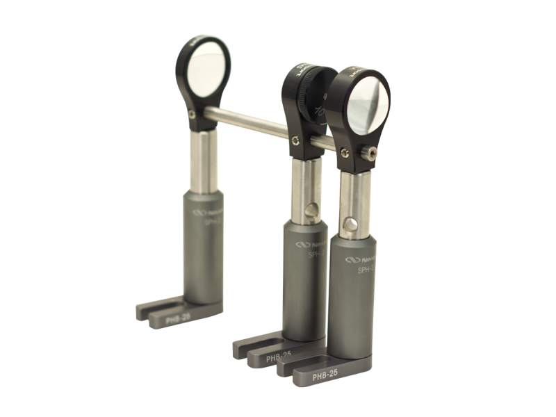 A-Line™ lens holders are constrained both by the post/post holder as well as by the A-Line guide rod creating a "strong-box" structure that is significantly stiffer and less susceptible to vibration than individually post-mounted lenses. Shown on the right is A-line lens mounts and rods used together with TSP Series Miniature Optical Mounting Post and MSPH Series Miniature Slotted-Base Optical Post Holders.
