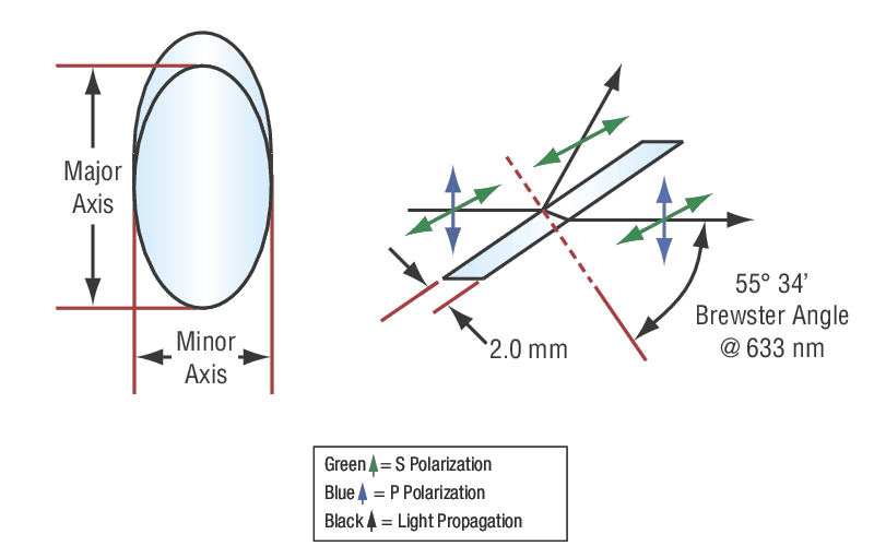 Our Brewster windows are made of UV grade fused silica with laser grade surface quality and parallelism, making them ideal polarizers for use inside a laser cavity.