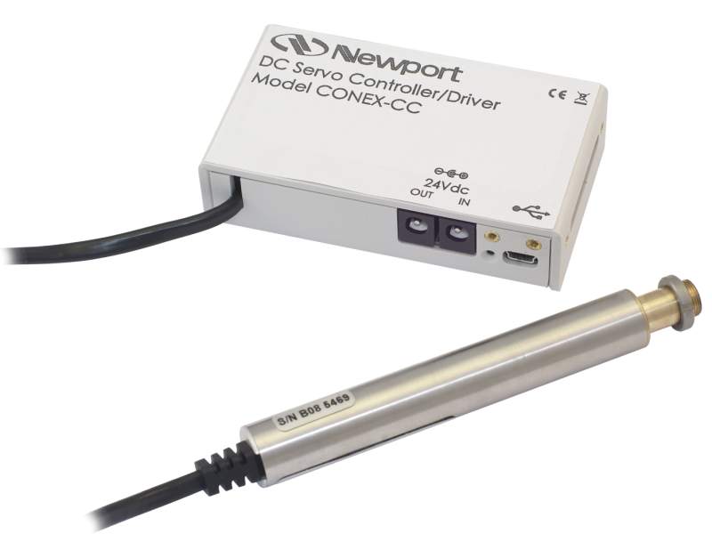 Newport also offers versions of the DC servo motor linear actuators with integrated CONEX motion controller. For out-of-the box control, the CONEX controller is preconfigured and delivered with the TRA-CC actuator.