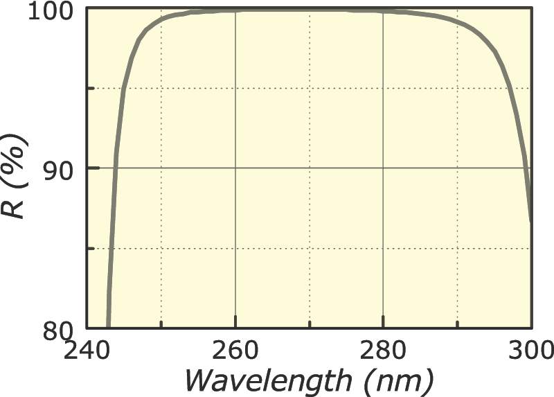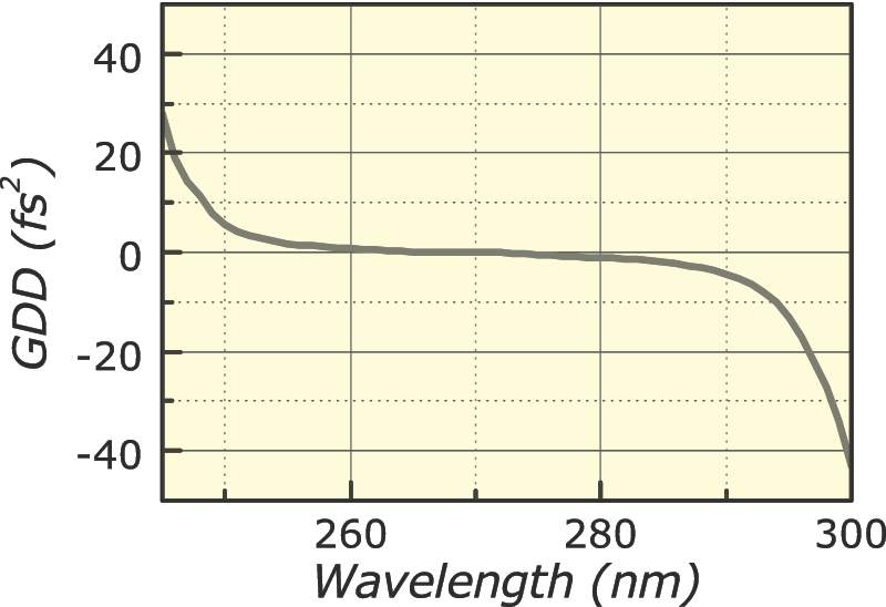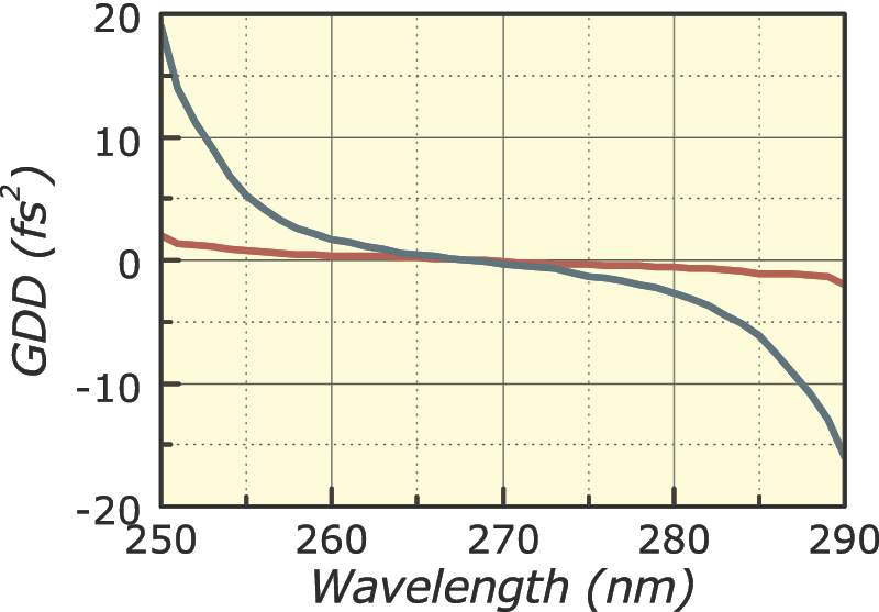 10Q20UF.HR20 provides high reflectance and low GDD in a wavelength range of approximately 20 nm centered at 267 nm, at near normal incidence.