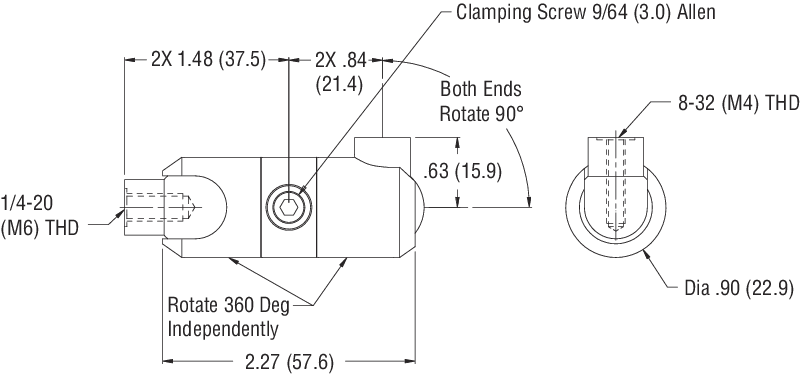Newport's 360° adjustable optical post joints securely hold and precisely position a wide range of optical tools, including cameras and detectors, in any orientation. Featuring double ball-and-socket hinge design, each threaded end rotates 360° about its own axis, 360° about the central axis, and swings 90° to the side. The joints are compatible with standard 0.5 in. (12.7 mm) optical posts, pedestals and post holders.