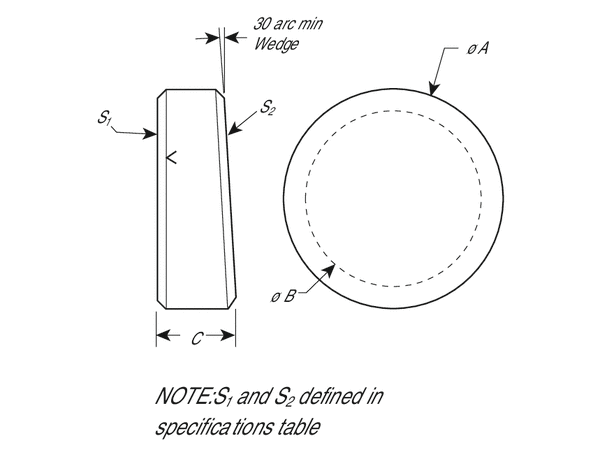 Optics with perfectly parallel faces are unsuited for use as reference elements in laser setups as reflections from both surfaces would be collinear resulting in undesired large period fringes. The introduction of a slight wedge causes unwanted reflections from the second surface to be deflected from the optical path. The back surface (S2) of these beam samplers is slightly wedged and an arrow on the side points to the non-wedged side (S1).