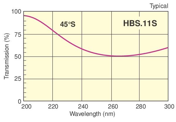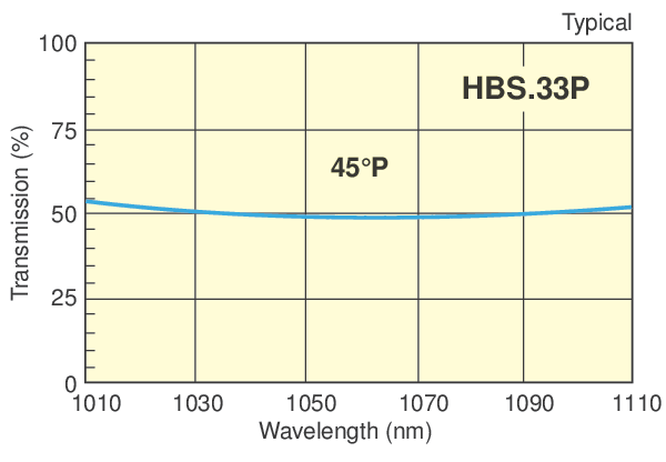 Beamsplitter coatings are available with a choice of wavelengths corresponding to each of the harmonics of the Nd:YAG (1064nm, 532nm, 355nm, 266nm) and optimized for equal 50/50 (R/T) split of P- or S- polarization. A V-coat antireflection coating optimized for 45° angle of incidence beams is applied on the back surface to minimize ghost reflections.