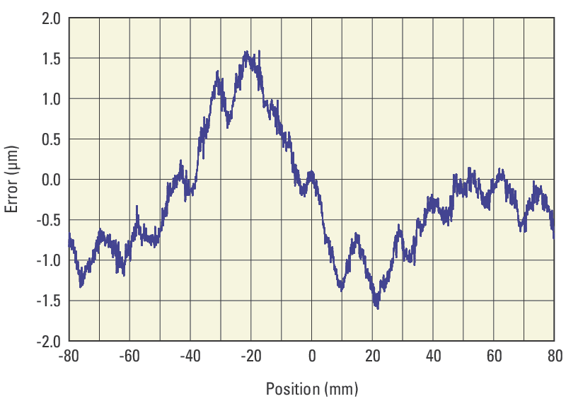 For critical positioning applications, Newport offers error mapping upon request for these linear motor stages driven by our XPS advanced motion controller. We will measure, implement, and verify the results of this error map that will individually optimize each stage's position accuracy. In addition, multi-axis error mapping is also available. Measurements are made at 20.0 ±0.2°C. A certificate of calibration will be provided with your stage. Actual data may also be provided upon request.