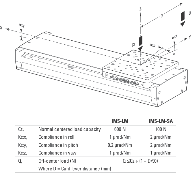 IMS-LM stages use electrical end-of-run and elastomer bumper hard stops to stop the carriage as smoothly as possible past the end-of-runs. The overtravel allowed by the hard stops is 8 mm, and when used with Newport XPS controllers, any commanded motion out of the travel range is not allowed.