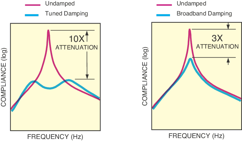 - Constrained layer core damping attenuates broadband vibration