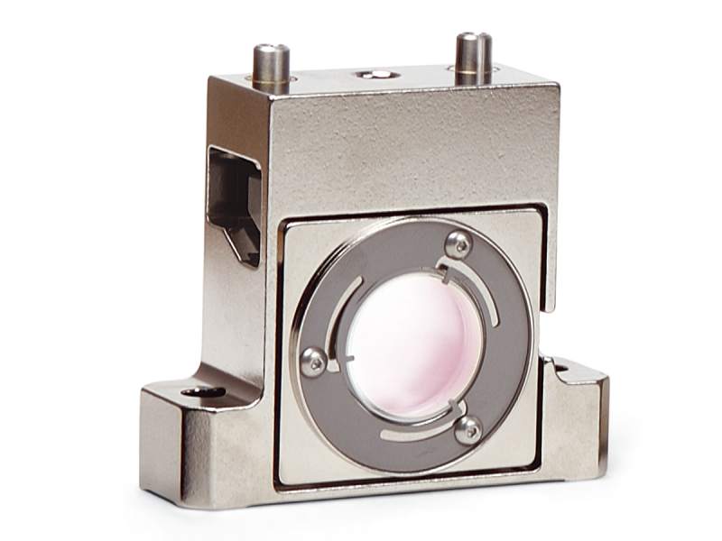 In traditional top adjust mounts, a screw pushes directly on a machined ramp to adjust the mirror position. To improve upon this design, our Stability™ top adjust mounts utilize a cam mechanism as a pivot in combination with sapphire kinematic bearing surfaces to maneuver the ramp and adjust mirror position, together with dual mounting holes and thick frames, resulting in very low friction and superior mechanical stability. These mounts are also designed with a unique three-point optic-retention system which optimizes stability while minimizing wavefront distortion.