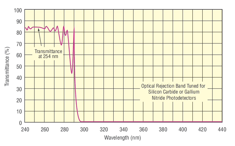 - ≥80% transmission typical at 254 nm