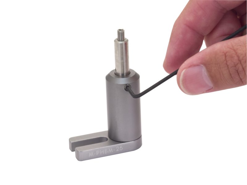 The miniature posts these bases support lock into place at the desired height using an M4 set screw, instead of a protruding knob. The set screw locks using a hex-key to keep the profile of these bases to a minimum and provide the most versatility for arranging a compact system.