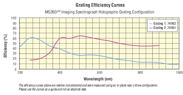 - Two holographic gratings used for high efficiency and minimum aberration from 200-925 nm