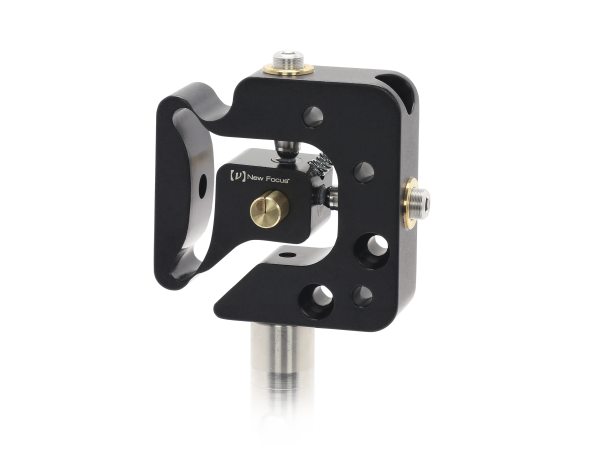 The model 9016NF Tiny Fiber Positioner uses a flexure design to provide smooth motion to fiber alignment for its five degrees of freedom. Using a similar architecture to our Model 9091 Single-Mode-Fiber positioner, this single-unit component provides the same 4.4 µm resolution per 5° with a compact design to fit in confined spaces. The components mounts to optical pedestals and posts with a threaded mounting hole, available with either 8-32 threads or M4 threads.