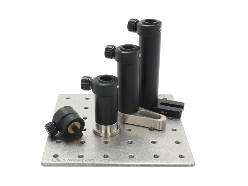 Newport's patented (M-) PS-1P Precision Peg adapter allows the post holders to be precisely installed and removed without changing location within an optical setup. One end of the pegs is threaded into the bottom hole of post holders and the other end precisely slides into the PS-1P adaptor and locks in place with two set screws. The curved shape of the Peg allows the setscrews to lock parts together securely.