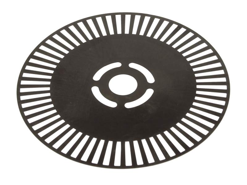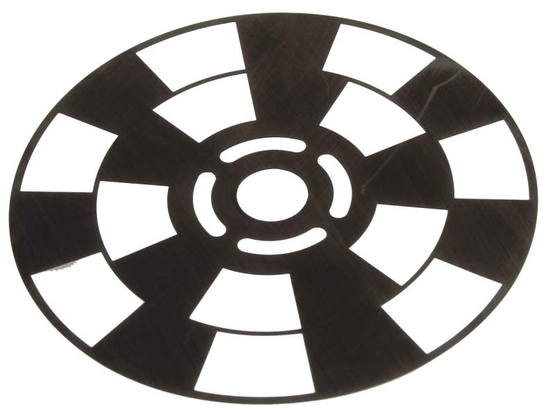 Six chopper wheels are included with the 3502 optical chopper system allowing for chopping frequencies from 4 Hz to 10.65 kHz (not included in the 3502-BASE model). Shown in the top row are the 60/2-slot, 7/5-slot, and 2-slot wheels, and the bottom row shows the 100-slot, 42/30-slot, and 60-slot wheels. All chopper wheels are 4.50 inch (114.3 mm) diameter. These high quality chopper wheels are made of a beryllium copper alloy, which offer superior performance compared to lower cost steel alternatives. This material choice allows for better thermal conductivity, higher strength, tighter machine tolerances, and are non-magnetic, non-sparking, and corrosion resistant. If a wheel becomes lost or bent, replacement models are available.
