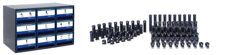 The OMK14 0.5 inch diameter optical post holder kit provides a cost-effective collection of 110 optical post holders in a wide variety of sizes and 20 clamping forks for a total of 130 products with universal Metric/Imperial compatibility. The kit includes a pre-labeled 9 drawer cabinet for easy setup and ordering of additional parts if necessary for your laboratory.