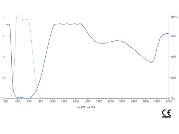 The advanced filter technology implemented in these glasses ensures maximum visibility with unsurpassed attenuation at specific laser wavelengths. The transmission curve for each model of laser safety glasses is available by clicking on the model number in the order or specification table.
