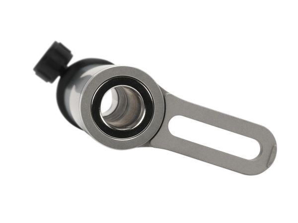 The base of the swivel clamp incorporates a ring magnet, which allows for rough alignment prior to securing with the swivel clamp. The magnet is large enough to allow the post to pass through, so the post can rest directly on the optical table for maximum height adjustment.