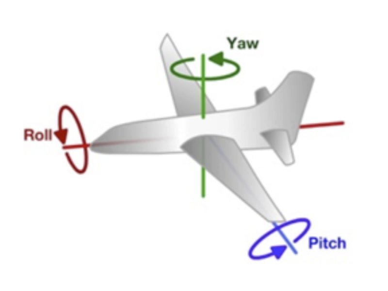 The easiest way to understand roll, pitch and yaw is to visualize an airplane. Think of an imaginary line that runs through the front of the plane and out the back. A rotation along this line would result in a roll -- the plane would start doing barrel rolls. Now imagine another line running through both wings of the plane. A rotation along this line is a change in pitch. The plane either climbs or dives, depending on the direction of the pitch. Finally, imagine a vertical line that comes out of the top and bottom of the plane. This is the yaw axis. Rotating along this line results in a change in direction for the plane -- either right or left.