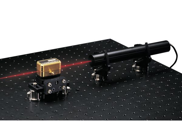 The 9071-V vacuum four-Axis tilt aligners allow intuitive alignment of optical tubes or paths with an input and an output like electro-optic or acousto-optic modulators or lenses. Center one end to the laser beam, then adjust the other until the beam emerges. All motions are independent and connected to a single base, so you won’t induce coupled motion while making adjustments. These stages are great for aligning New Focus™ optical modulators.
