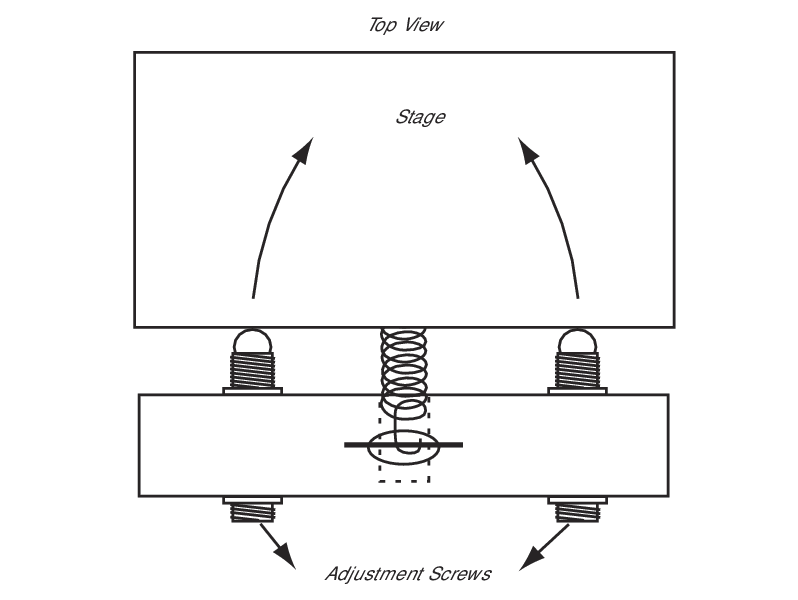 Kinematic Device Alignment Stages combine the capabilities of multiple, stacked translation stages into a single stage with multiple actuators. These stages are designed to align a device or optic, such an acousto-optic modulator, to a beam path, avoiding the added wobble of combining components for multi-axis positioning. These stages have all degrees of freedom needed to align one optical axis to another. The five-axis stages provide additional control of the focus and the six-axis stage provides roll. Each degree of freedom has one actuator for motion, such that two actuators provide translation when moved equal amounts, while one actuator's motion provides the tilt about the bisecting axis. Rotations of the mounting plate around its center, then, arise from turning two actuator screws in opposite directions.