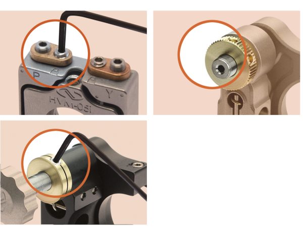 For long-term stability, Suprema® ZeroDrift™ Mirror Mounts feature lockable adjustment screws. The jam nut lock, used for SS100T, exerts an axial force on the adjustment screw which locks the mirror mount's alignment in place and can be tightened by hand. The lever lock, used for the ST05 models, and the flexure lock built with an AJS bushing, used for SU100TW, exert a tangential force on the screw to prevent rotation. Adjustment and locking actions for these models are accomplished using a single tool from the same side of the mount.