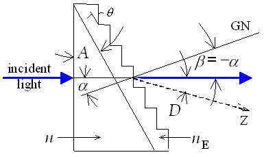 The derivation of the formula for computing the required prism angle follows (refer to Figure 12-2). On introducing Snell's law, the grating equation becomes