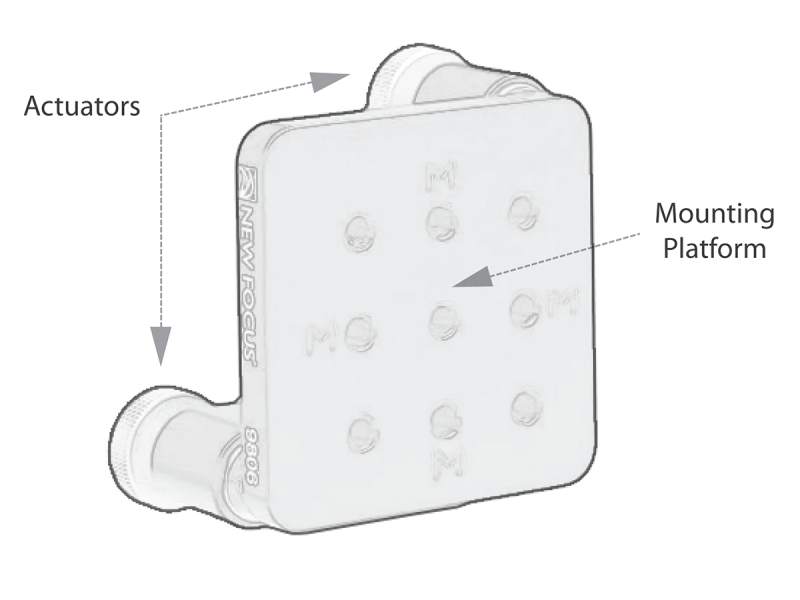 Platform mounts have a flat, square, adjustable surface for mounting square optics, prisms, and beamsplitter cubes. One benefit all platform mounts have over aperture mounts is their ability to hold mirrors which are as large as or larger than the actual mount itself.