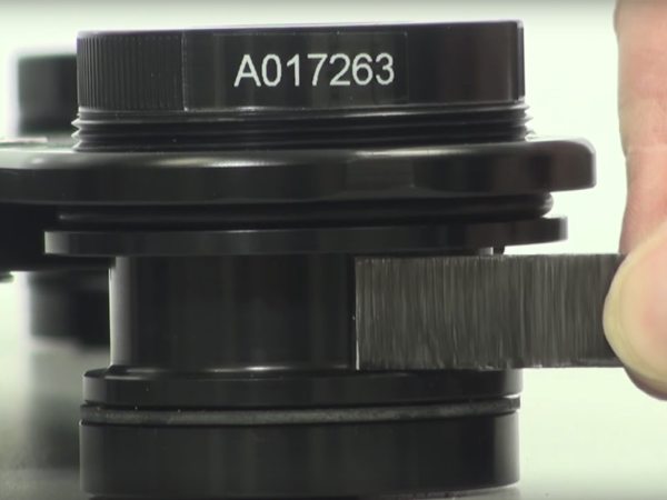 A special "gap tool" is shipped with the isolators to verify proper loading. This gap tool measures 0.56 in. wide by 0.1 in. thick. When the bearing is under compression, the gap in the bottom half of the isolator (see below) should be greater than 0.1 in. but less than 0.56 in. to ensure that the payload is isolated. Thus, if the 0.56-in. portion of the tool fits in the gap, then the bearing does not have sufficient weight on it. Additionally, if the 0.1-in. portion of the tool does not fit in the gap, then the bearing is overloaded.