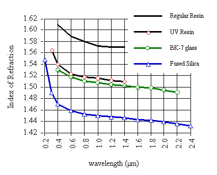 - Select the prism material desired (e.g., BK-7 glass for visible light or fused silica for ultraviolet light).