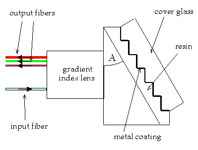 The reflection version of the transmission grism is often used in miniature Littrow spectrographs for wavelength demultiplexing using fiber optics (see Fig. 3). A gradient index lens (or "grin" lens) usually performs the collimating function and the prism transmits the light to the grating.