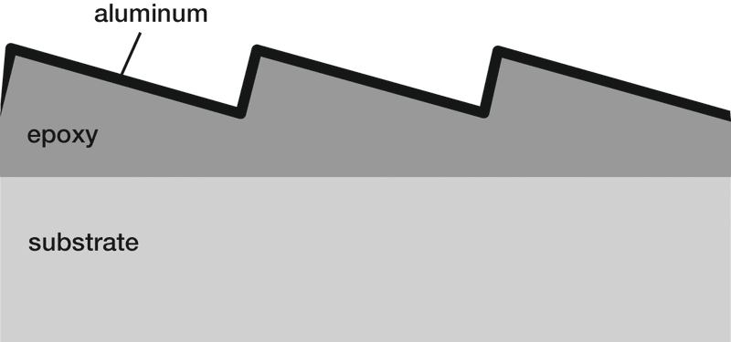 Commercially available diffraction gratings are replicated optics comprised of three layers: a substrate, an epoxy layer, and (usually) a reflective coating. Each layer meets a different purpose: