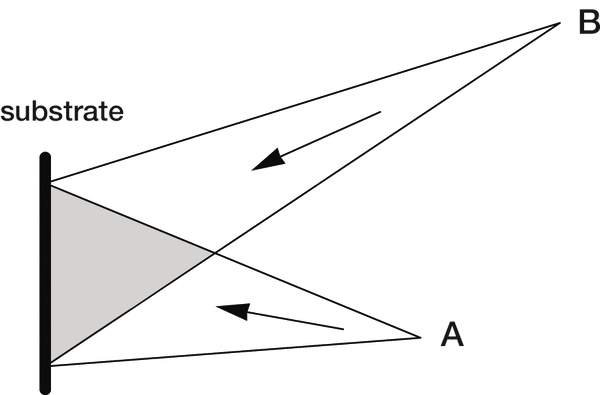 The double-beam interference pattern shown in Figure 4-1 is a series of straight parallel fringe planes, whose intensity maxima (or minima) are equally spaced throughout the region of interference. Placing a substrate covered in photoresist in this region will form a groove pattern defined by the intersection of the surface of the substrate with the fringe planes. If the substrate is planar, the grooves will be straight, parallel and equally spaced, though their spacing will depend on the angle between the substrate surface and the fringe planes. If the substrate is concave, the grooves will be curved and unequally spaced, forming a series of circles of different radii and spacings. Regardless of the shape of the substrate, the intensity maxima are equally spaced planes, so the grating recorded will be a classical equivalent holographic grating (more often called simply a classical grating). This name recognizes that the groove pattern (on a planar surface) is identical to that of a planar classical ruled grating. Thus, all holographic gratings formed by the intersection of two sets of plane waves are called classical equivalents, even if their substrates are not planar (and therefore their groove patterns are not straight equally spaced parallel lines).
