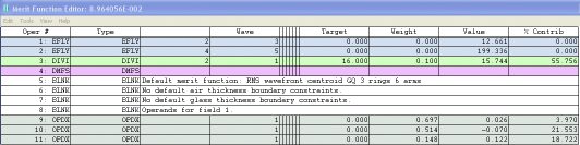 In the Merit Function Editor, enter the effective focal length, EFLY, for each lens. Take the ratio of the focal lengths using the DIVI command.