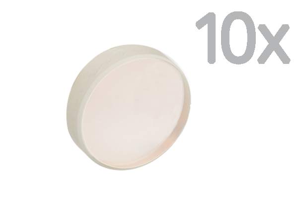 This is a pack of 10 of the very popular 10D20BD.2 Broadband Dielectric Mirror. This mirror is an extremely versatile mirror for laboratory applications and highly efficient over a broad wavelength range. This 1 inch (25.4 mm) diameter mirror is made from a 6.0 mm thick Borofloat® 33 substrate. Borofloat® 33 has low thermal expansion and is an excellent substrate for most applications. Our BD.2 coating offers high reflectance for near infrared diode laser applications. The BD-2 coating is extremely durable and will withstand repeated cleaning. This mirror has a λ/10 surface flatness and a 15-5 surface quality.
