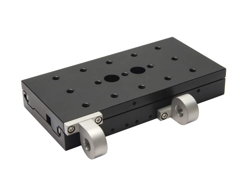 Model 443-4 is a low-profile, precision ball bearing linear stage with a maximum travel range of 4 in. It features exceptional performance, usability and value with a 58-lb. centered load capacity and 1/4-20 mounting holes. Hardened balls rolling between opposing pairs of hardened and polished stainless steel rods allow for stability, repeatability, and exceptionally smooth motion. Two actuators (sold separately) bear against each other, tip-to-tip, to enable up to 4 in. of travel. Springs provide preload against the actuator tips to eliminate backlash.