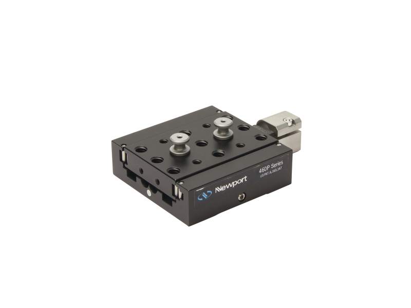 The 460P-X-05 High-Performance Modular Ball Bearing 1-Axis (X) Linear Stage is constructed of aluminum and feature hardened ball bearings running between opposing pairs of hardened and polished stainless steel rods. This offers exceptional straightness of travel with lower load capacity than crossed-roller bearing stages. Actuators bear upon a hardened, polished carbide insert for 0.5 inch (12.7 mm) of smooth motion. Springs provide preload against the actuator tip to eliminate backlash. Stable, stainless steel actuator mounts allow your choice of Newport’s manual or motorized actuators and can be reversed to accommodate vertical mounting.