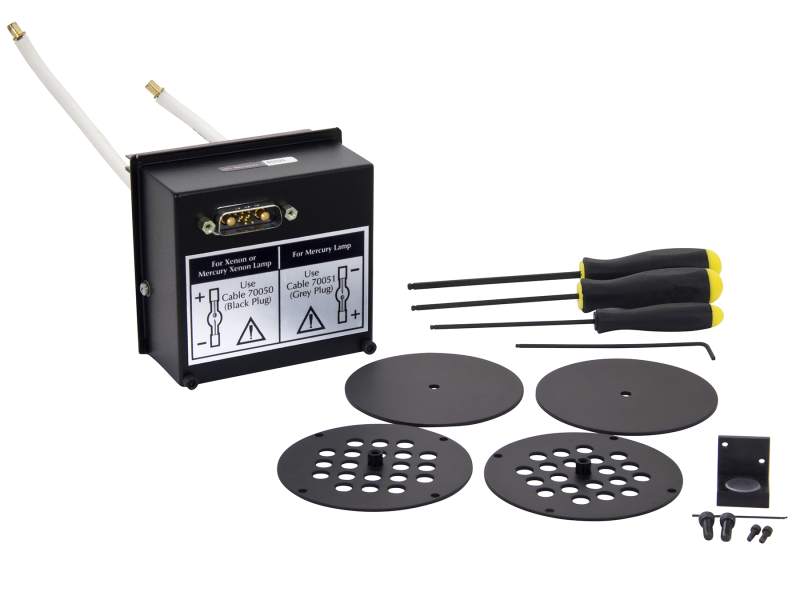 The 60025 Interface Kit is used to connect a Q Series lamp housing to the 69907 arc lamp power supply. This item provides ignition for Xenon and Mercury arc lamps. It also includes a safety interlock feature to ensure the lamp cannot be used without the lamp housing cover being in place. When ordering a Q Series Light Sources for arc lamps, this interface kit is provided along with all other items needed to power the lamp. If the 60000 Q Housing is being configured by ordering individual parts, the 60025 is a required item whenever an arc lamp is to be used. Note that the 60025 is not for use with IR emitters, deuterium lamps or quartz tungsten halogen lamps. Because the Q Series Lamp Housing is designed to be flexible and easy to reconfigure, when using these other types of light sources, order the appropriate interface kit.