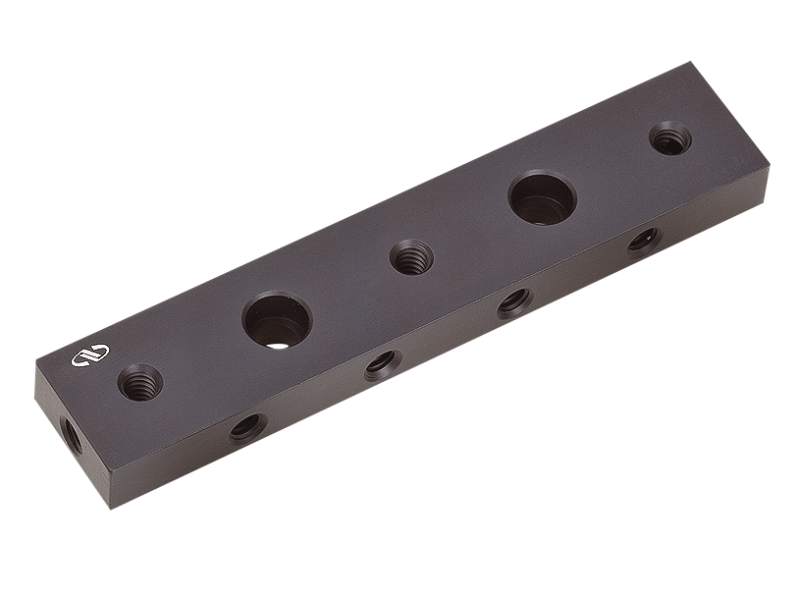 The CR-1-M Construction Rail has tapped holes on all surfaces as well as counterbored clearance holes for M6 screws. The rail can be attached to a breadboard, a cube, another component, or another rail for modular versatility.
