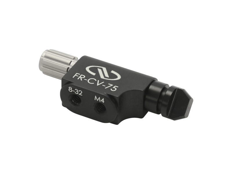 The FR-CV-75 provides rotational adjustment for any of Newport’s Circular Linear Variable ND Filters having a Ø7.5 mm inner diameter. The slim design minimizes blockage of the filter's clear aperture and, with its clamping thumbscrew design, it can accommodate filter thicknesses from 2 to 13 mm. This mount is unique in that it has both English (8-32) and metric (M4) post mounting threads clearly marked on its base. To prevent inadvertent rotation after adjustment, the FR-CV-75 incorporates a side-located locking screw.