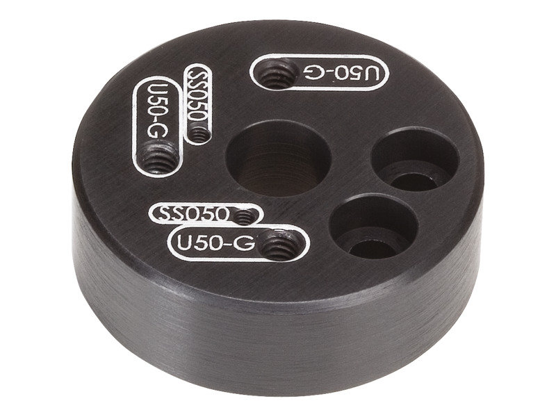 With the Q-A50-E adaptor, any of the ULTIMA® or Suprema® 0.5 inch mirror mounts can be used in the cubic enclosure. For convenience, the series number of the campatible mirror mount is printed on the adaptor right next to the mounting hole.