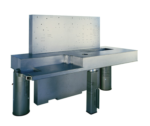 Newport has designed and built vertical table systems with vibration isolation mounting and rigid attachment to the floor or other support structure. A major consideration has been given in these designs to avoid any resonance between the cantilevered table structure and the driving frequencies in the environment. Many of the systems also have included provisions for high accuracy aiming and alignment of the entire integrated table system.
