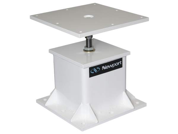 To conveniently and without installation expense isolate disruptive floor vibrations beneath tall equipment, Newport's large selection of different capacity pneumatic isolators and table top constructions can be configured into Bench-top, Standalone or Stand solutions, like this Custom OTS Integrity Stand Cradle which uses (4) 800 lb capacity isolators and was used to isolate automated equipment from nearby trains.
